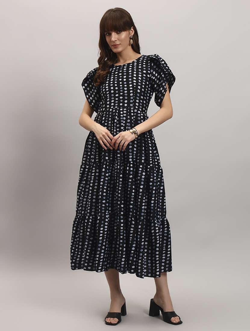 women printed tulip sleeve tiered dress