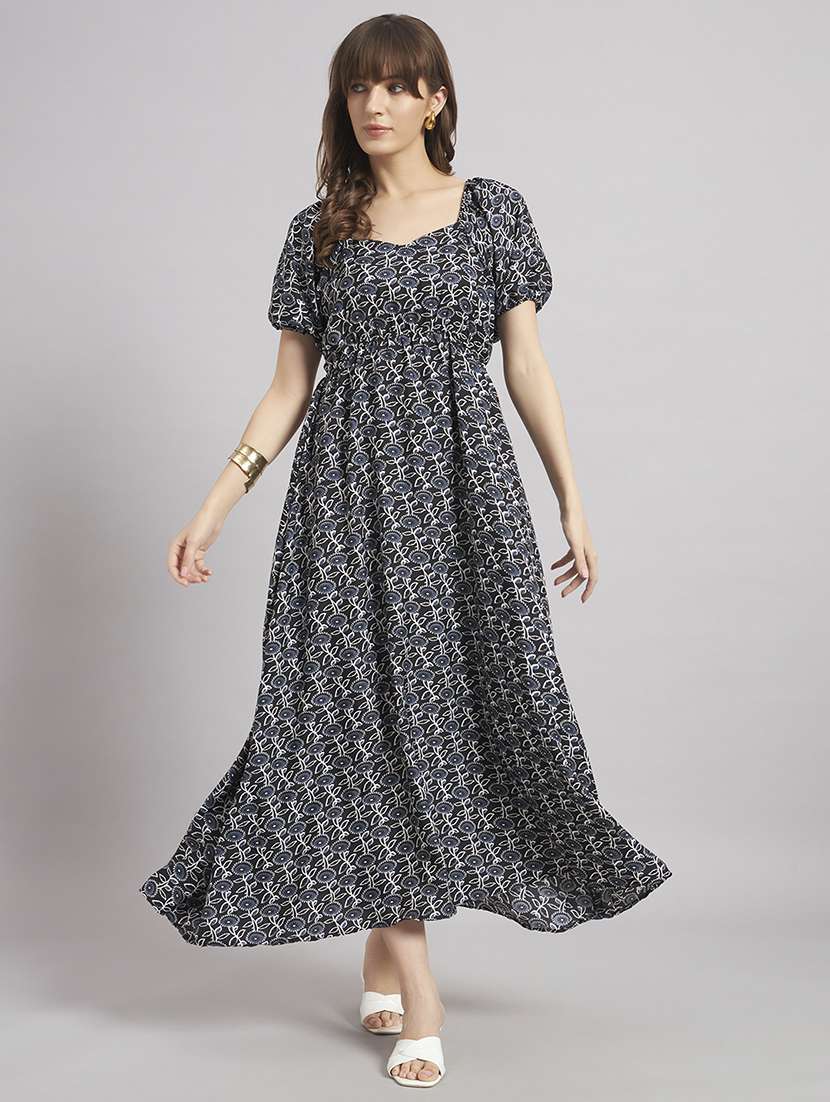 women floral puff sleeve a-line dress