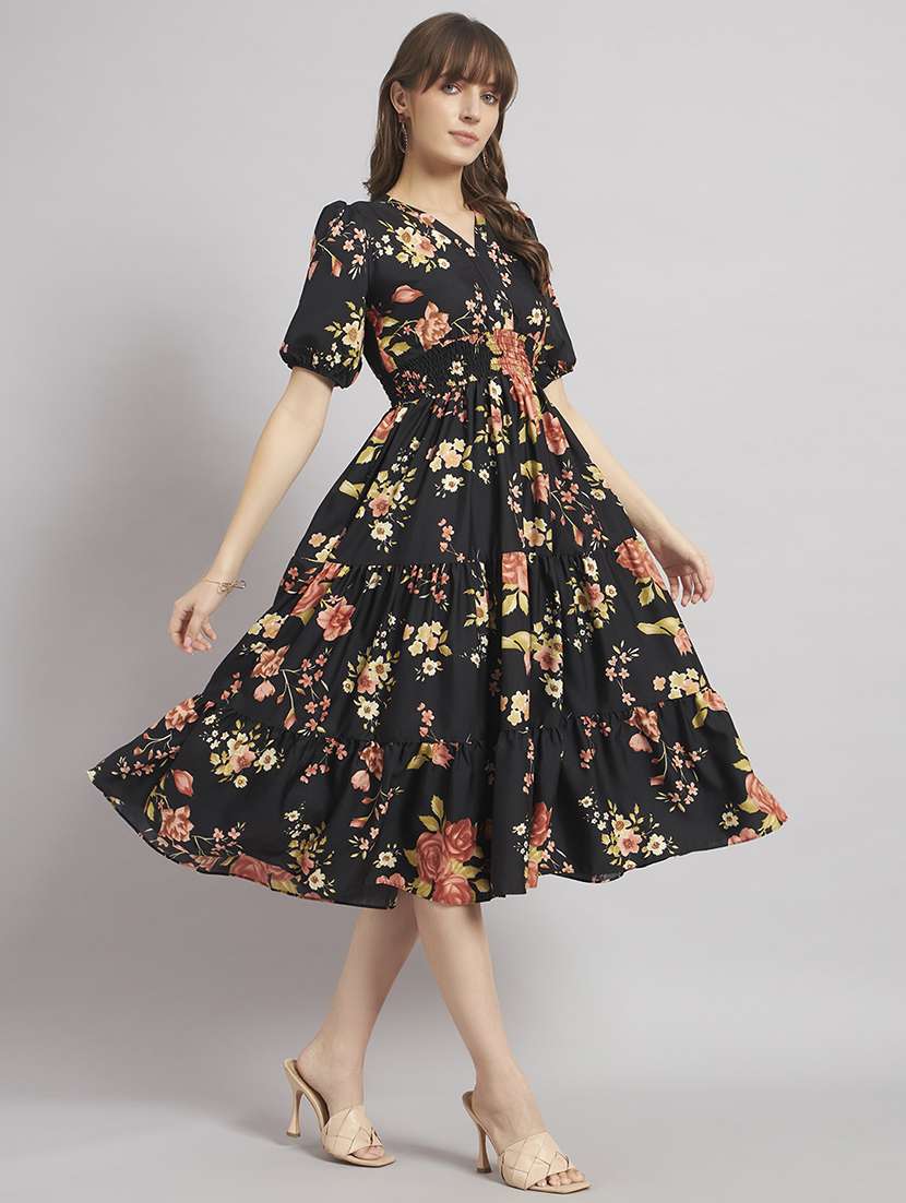 women floral puff sleeve tiered dress
