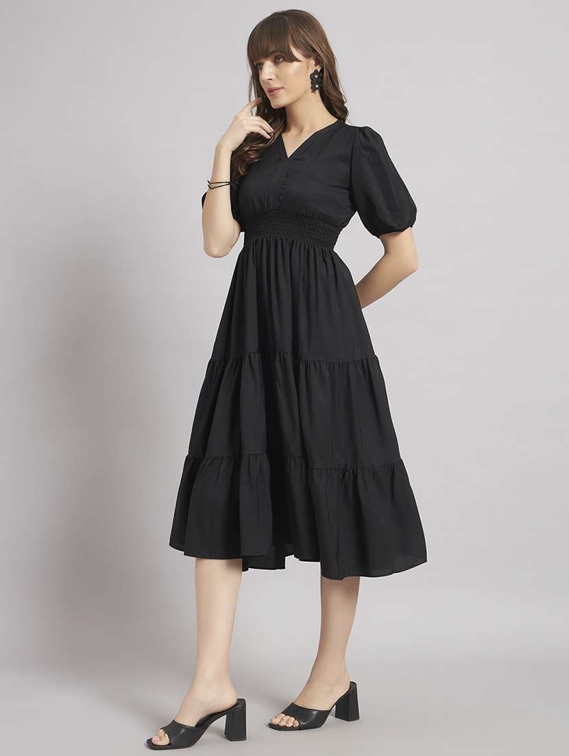 women solid puff sleeve tiered dress - 22308325 - Very Small Image - 1