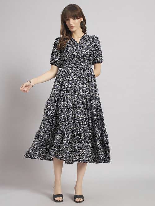 women floral puff sleeve tiered dress