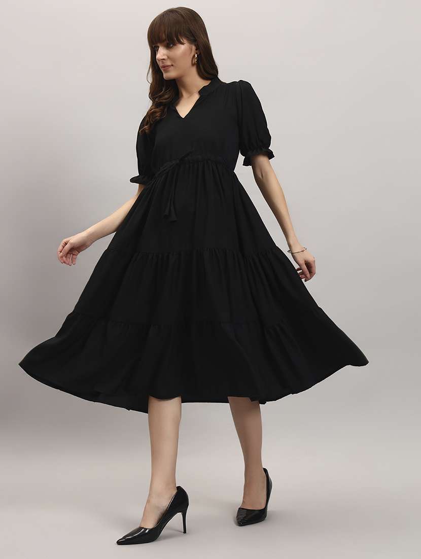 women solid puff sleeve tiered dress - 22309706 - Very Small Image - 1