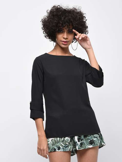 - » round neck button detail solid top
