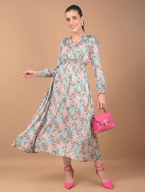 - Dress up in a soothing pattern and don this dress made of polyester material.
