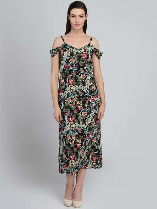 cold shoulder tropical maxi dress