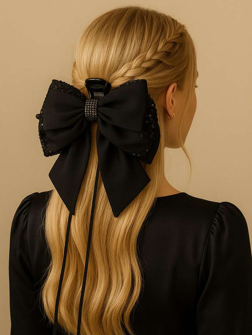 Premium Black Sequin Bow Hair Claw for Women