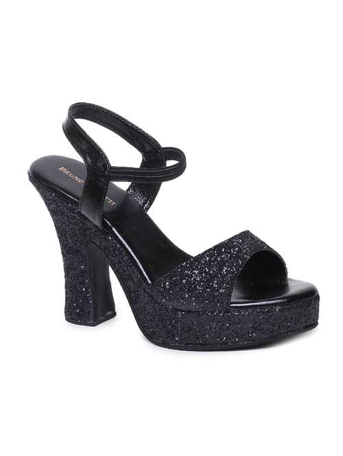 black faux leather back strap sandals