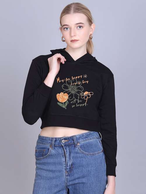 women long sleeve cropped hooded sweatshirt