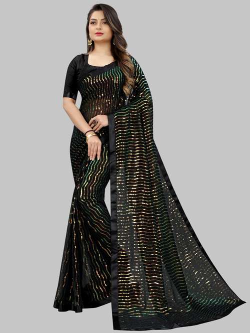 Colour : Black, Made from high-quality Georgette Fabric Squence Embroidered Saree, giving the saree a stunning look and feel.If you're looking for a beautiful saree to wear to a special occasion, this women's Georgette Squence Embroidered saree is sure to impress. With a length of 5.25 meters and an additional 0.80 meters of Art Silk unstitched blouse material.this saree is perfect for weddings, parties, and other special occasions.Order now and make a fashion statement with this beautiful saree.