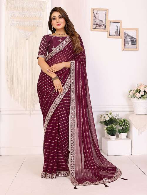women striped bordered saree with blouse