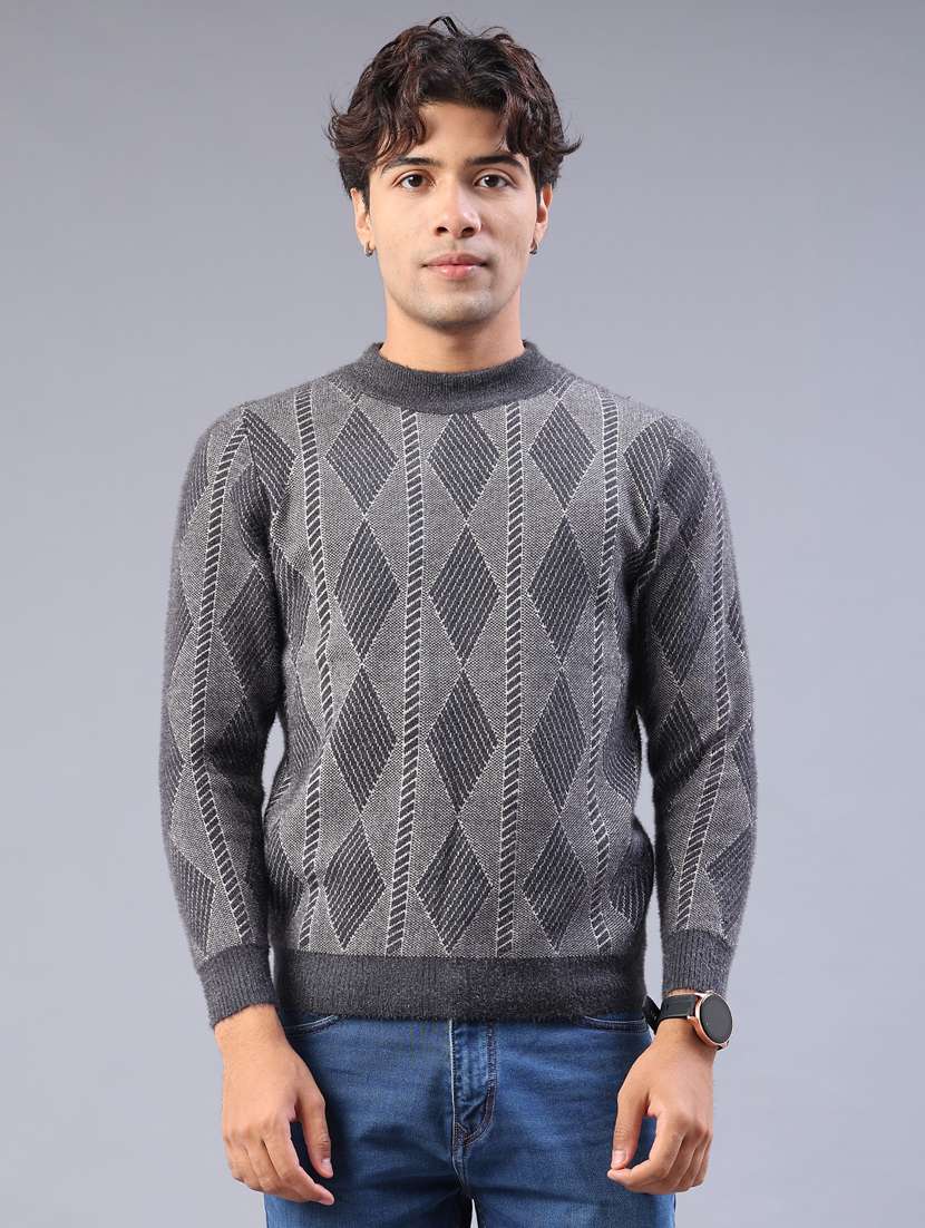 - » men self design long sleeve regular fit pullover