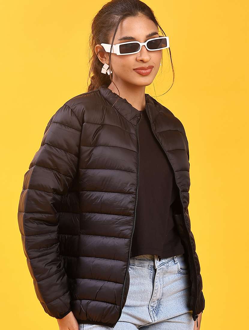 - » women solid stand collar long sleeve quilted jacket