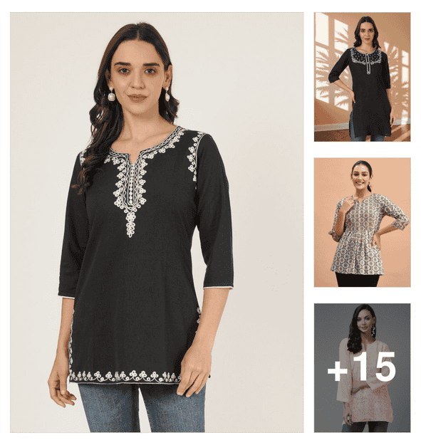 women embroidered three quarter sleeve straight kurti