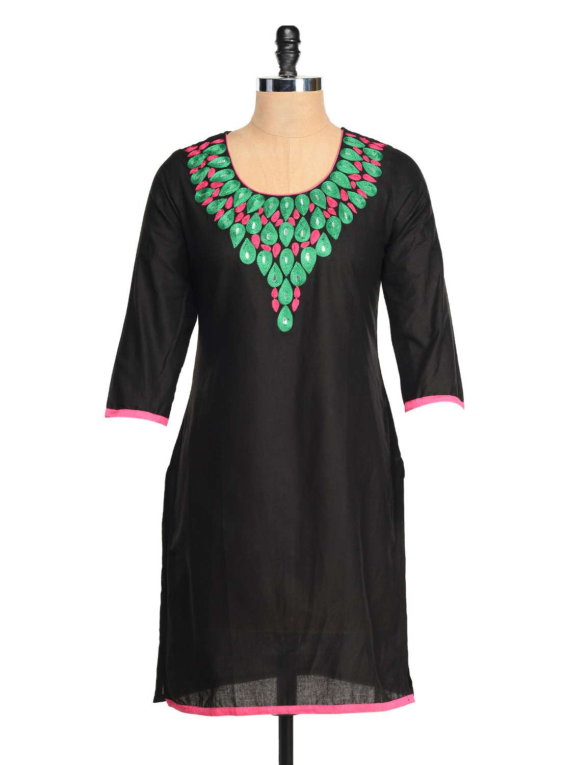 - » black kurta with a pink and green neck