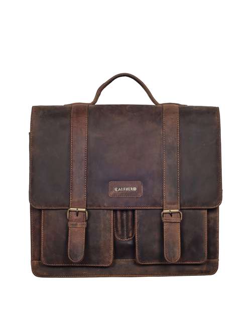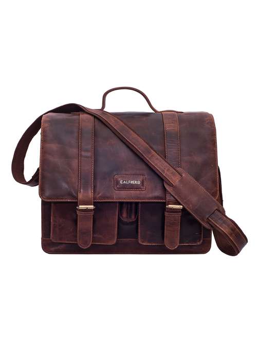 Calfnero Genuine Leather Men's Messenger/ Portfolio Bag, Trendly look makes it more fashionable, A perfect companion for your college, office and other uses, Inside 3 huge compartments with room for i-phone, i-pad, writing instruments, calculator as well as cards.Long front and back zipper, 2 patch front bags with magnetic lock, wide short handles and removable shoulder strap made of tear proof cotton with leather trim.