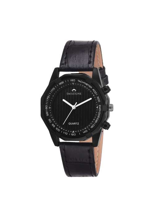 - » swisstone l4020 black leather strap wrist watch for women