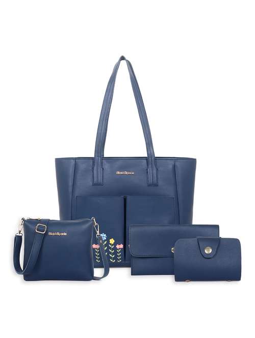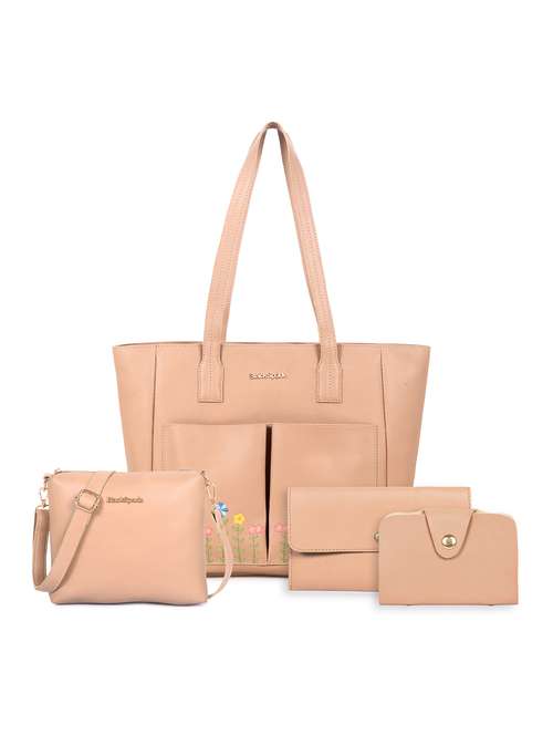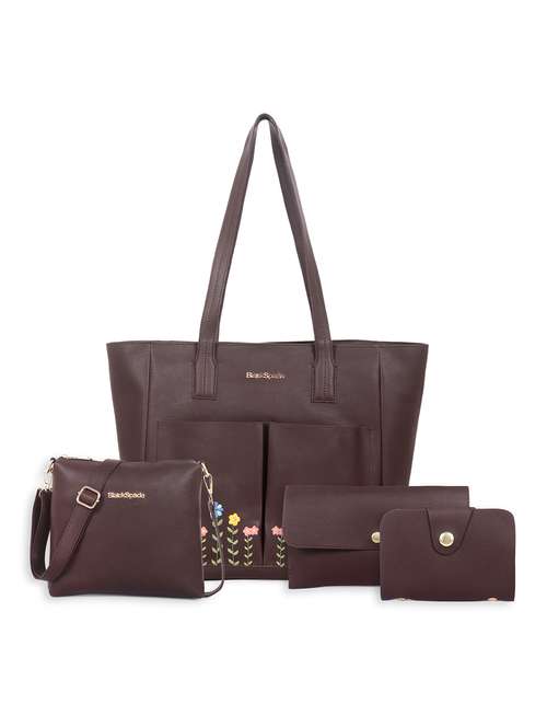 - » women embroidered leatherette tote bag with 2 pouch 1 sling