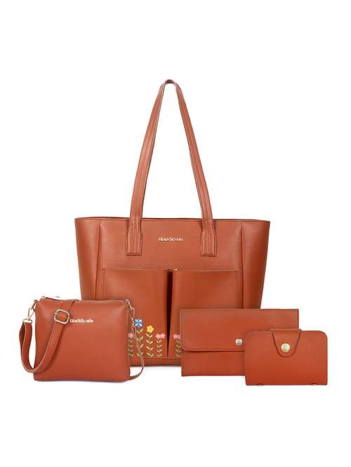 women embroidered leatherette tote bag with 2 pouch 1 sling