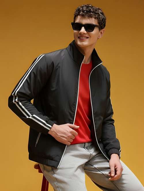 men taped long sleeve lightweight bomber jacket