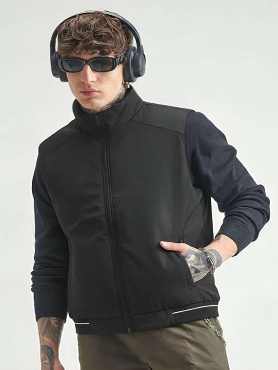 - » men solid sleeveless bomber jacket