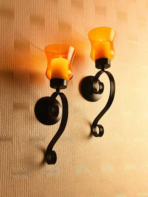 - » set of 2 decorative wall sconce candle holder with amber glass chimney with free candles