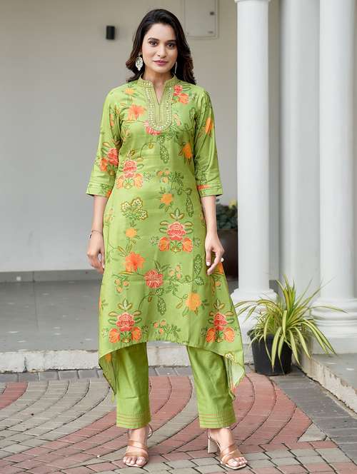 • Browse through the latest range of ethnic sets for women with tailored sleeve designs with embroidered works.