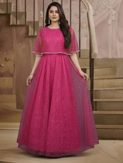 - These attractive gowns come in fit & flare made of net fabrics that can surely garner you lots of compliments when you wear it.