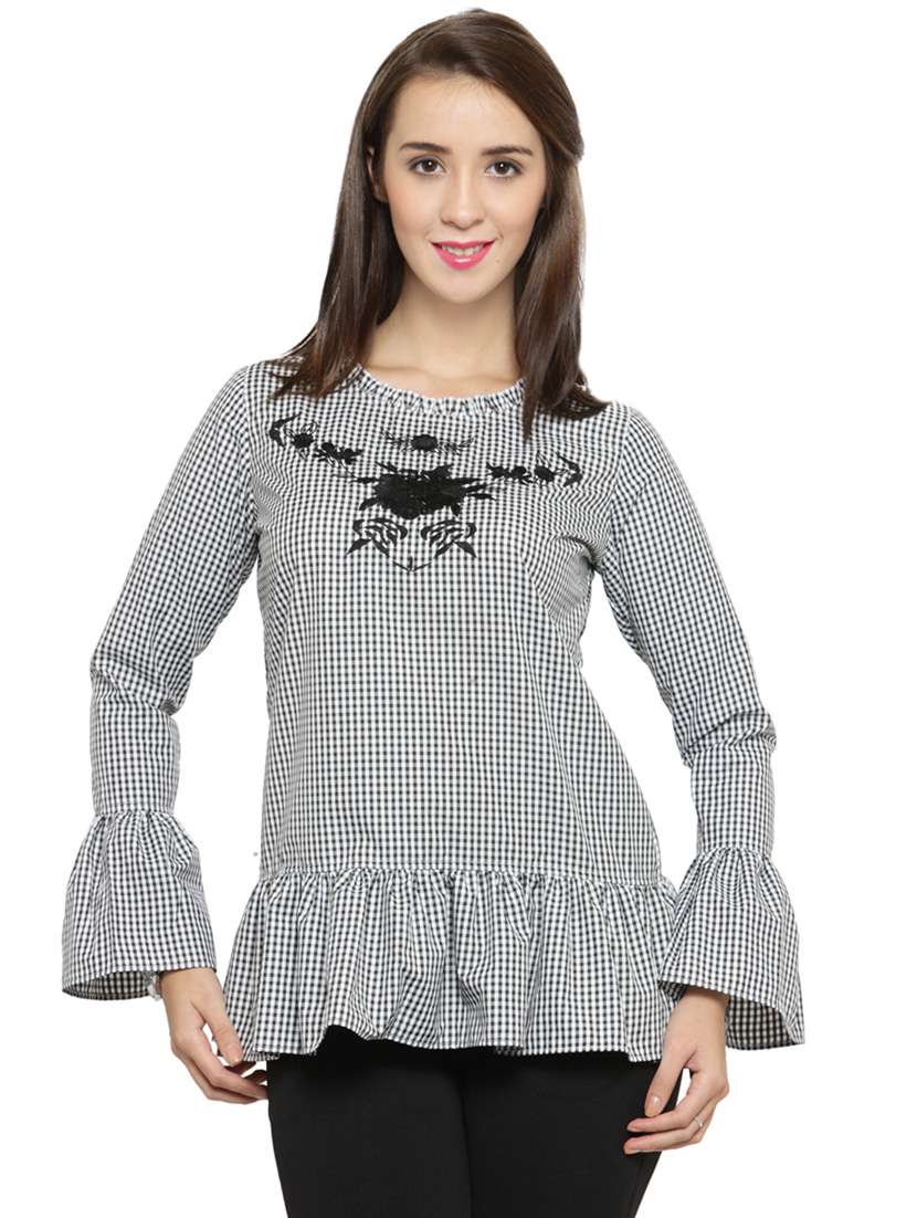black poly cotton casual top