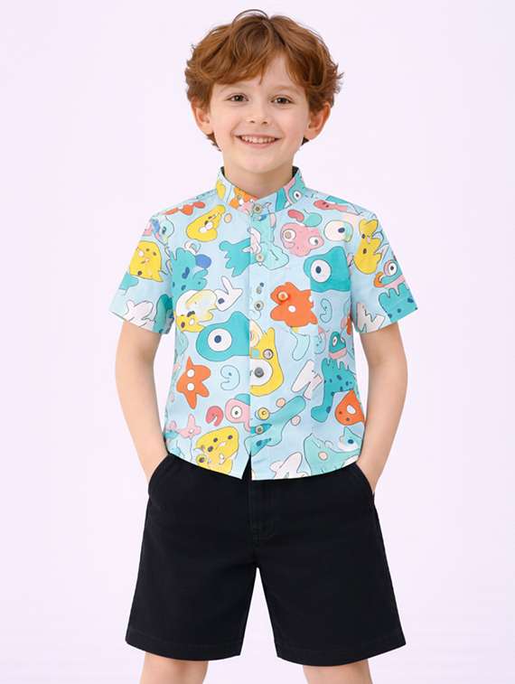boys printed shirt and shorts set