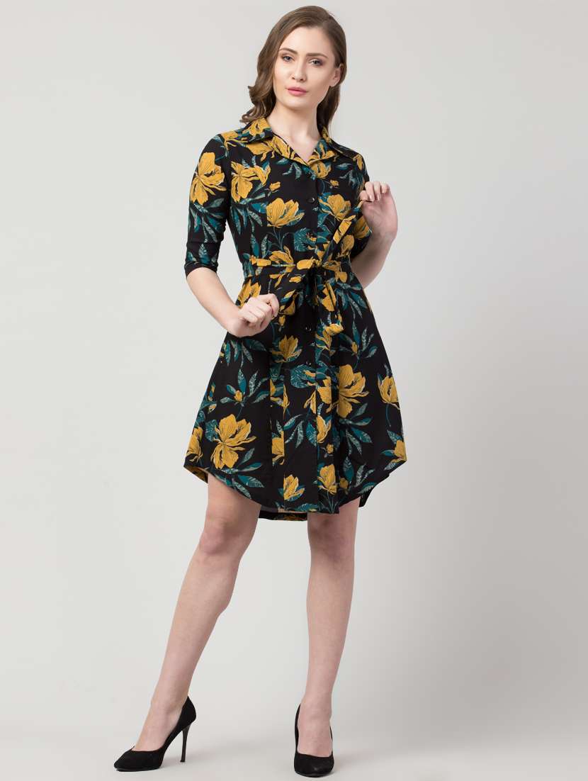 tie front floral shirt dress