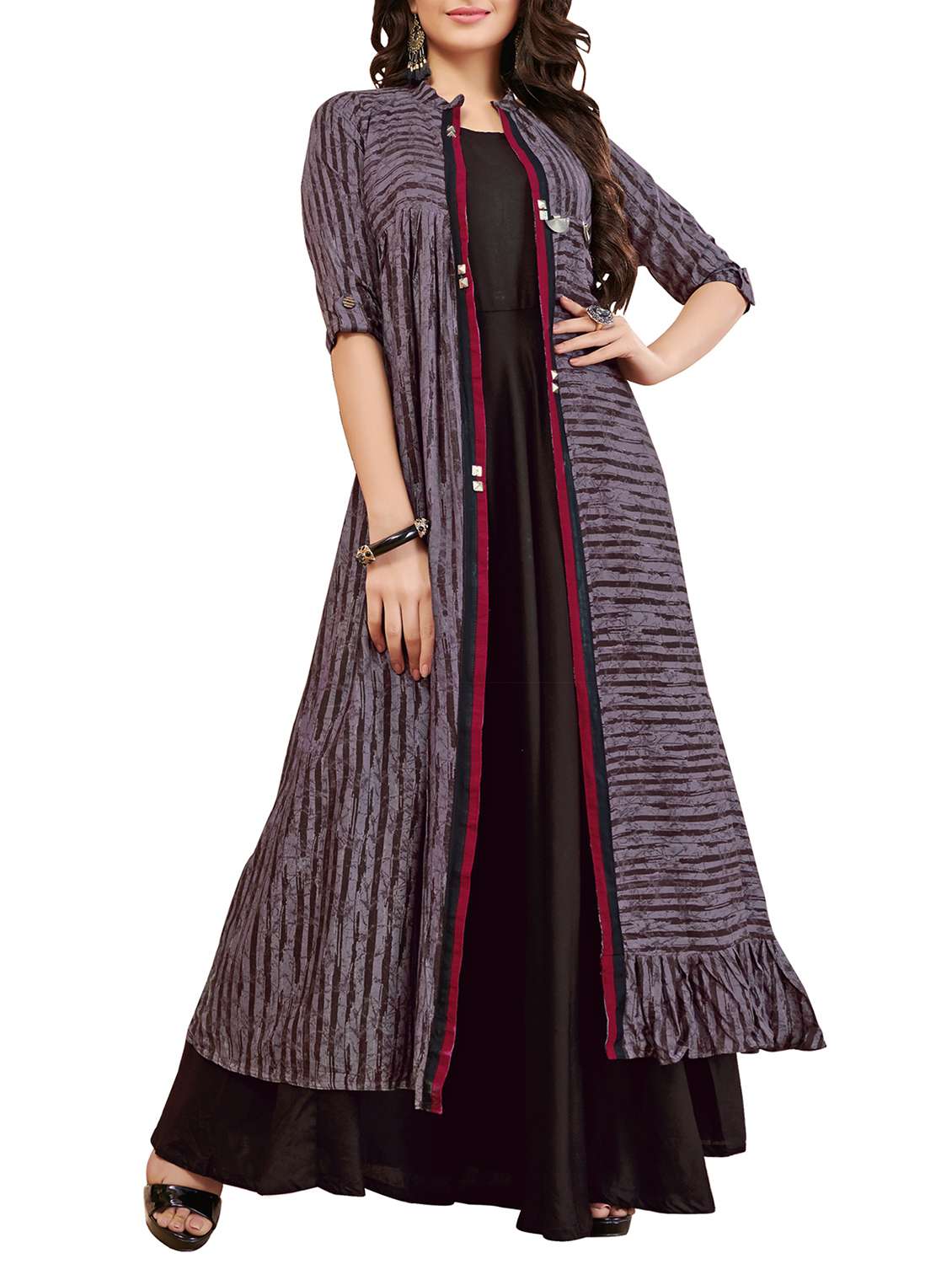 - » solid flared kurta with striped jacket
