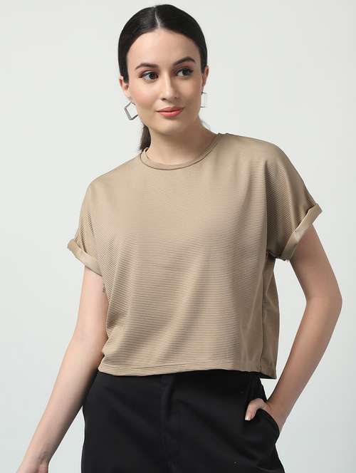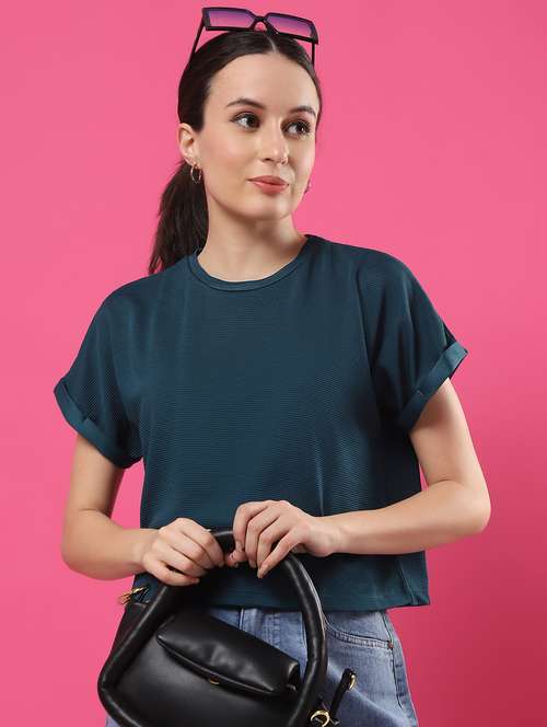 - Opt for this top made up of polyester material and get it in a varied neck design.