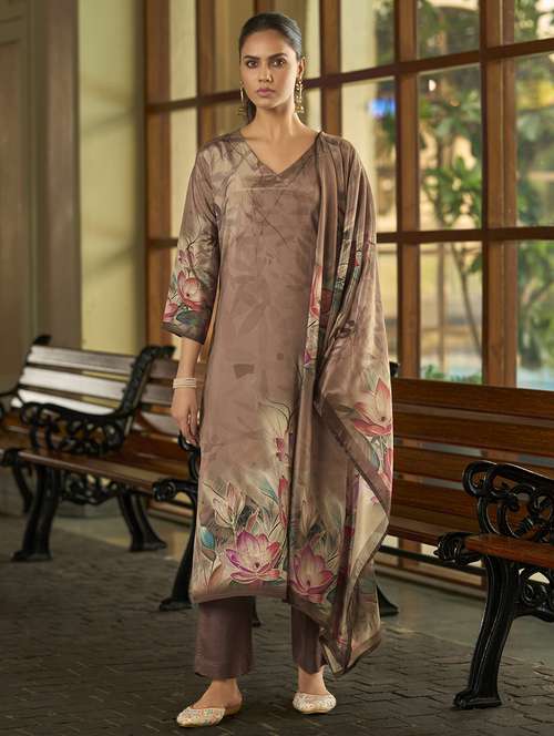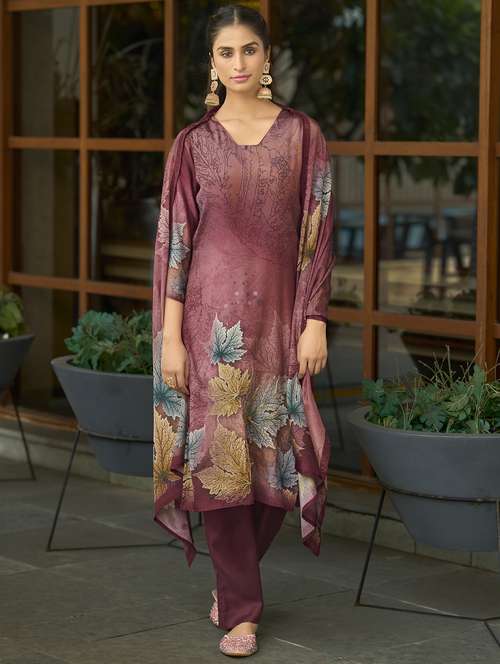 - Browse through the latest range of ethnic sets for women with tailored sleeve designs with traditional works.