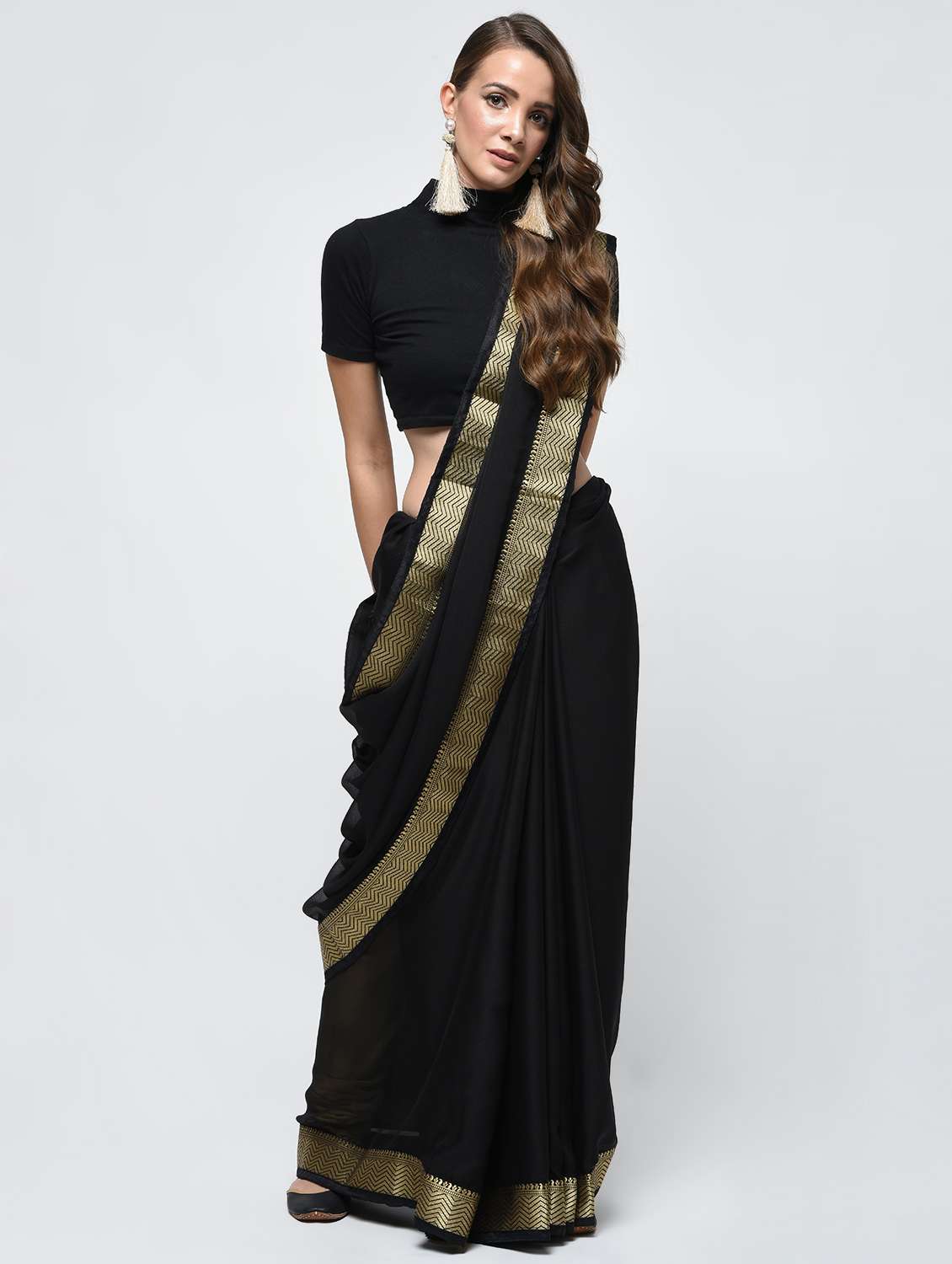 - » zari border black saree with blouse