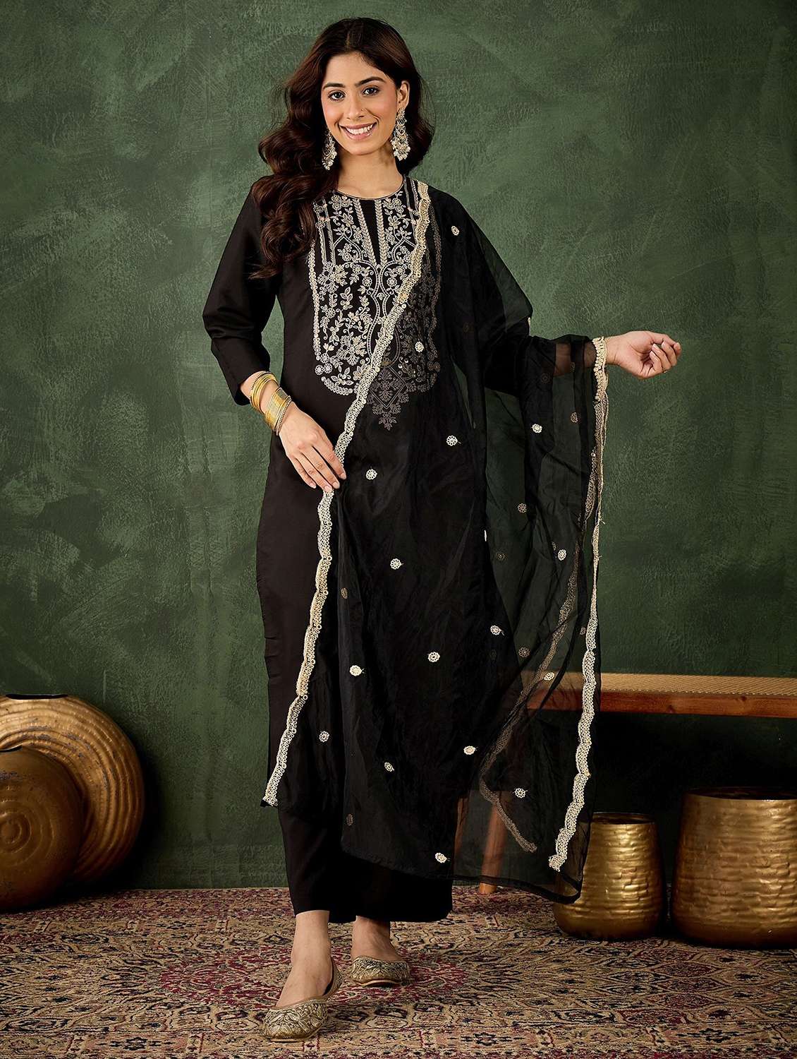 - Find gorgeous sets of ethnic wears in trending designs in black colors suitable for festive wear of occasions.
