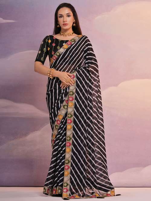 women striped bordered saree with blouse