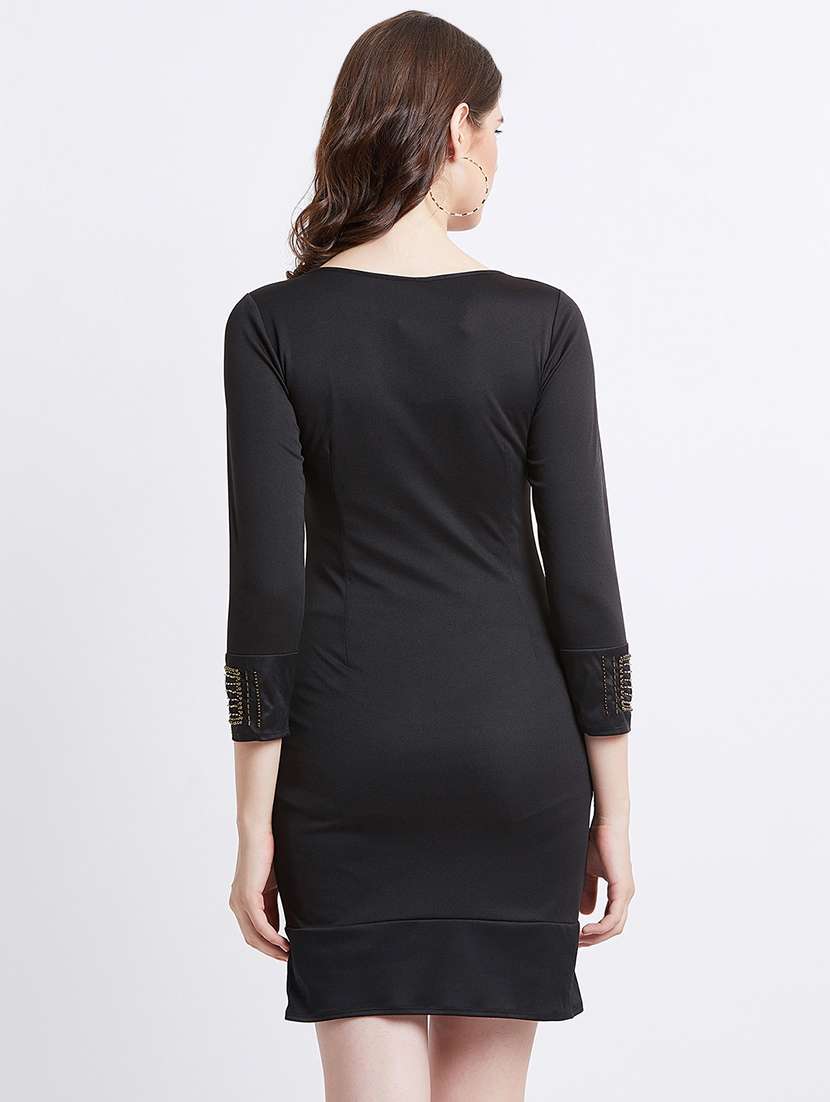embellished detail solid sheath dress