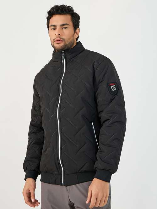 - » men black solid long sleeve quilted jacket