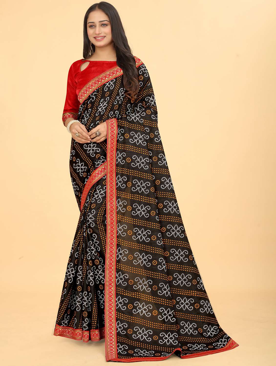 We offer a high Quality Range of Printed Bandhani Sarees that is Designed by our team of Creative Professionals and at the same time a perfect mix of modern patterns and contemporary designs of ethnic collection. Look stunningly beautiful in this lovely sari that is decorated with intricately Bandhej Design and Red Lace Border. Solid/Plain Red blouses are available to add the glam. It is a lightweight and easy to drape saree. We are kinda digging the unique styling and discovering the coolest trends. our saree gives you all, what you find in fashion and styling zones. Rebel in our new style saree and be a trendsetter. We are making many colour options in this beautiful saree, you can choose as your mood and occasion, so you Cute Ladies dress well-celebrate-revive-and repeat Purchase with 3Buddy Fashion. There might be color variation due to screen resolution and digital photography. This sari is ideal for Occasions like casual, traditional, work wear, festival, daily wear...