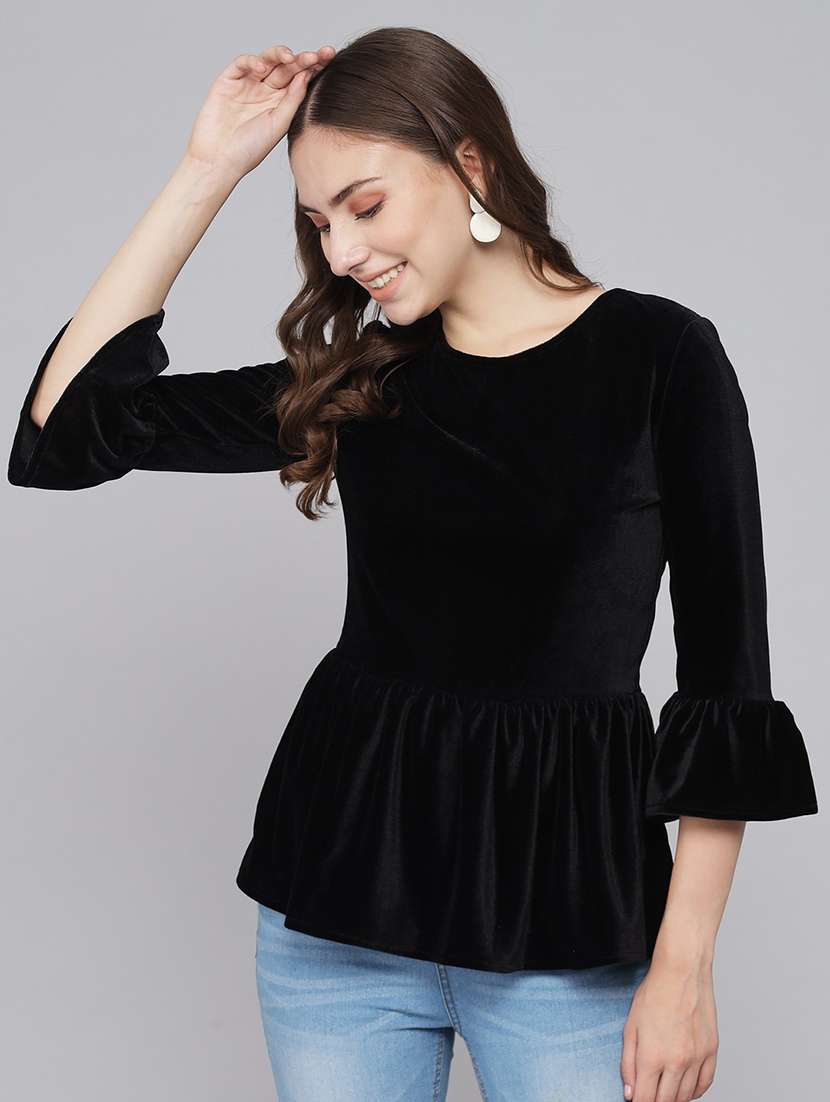 • Opt for this top made up of velvet material and get it in a varied neck design.