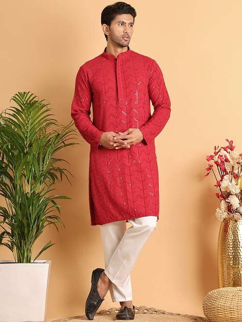 men mandarin neck sequined kurta pyjama set