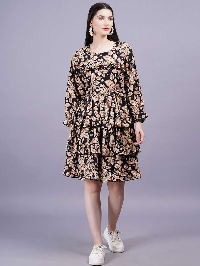 - » women printed puff sleeves layered dress