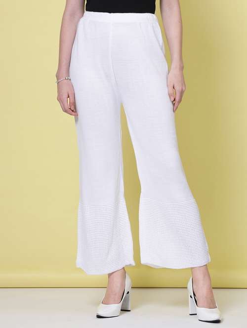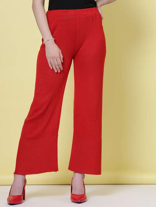 Thsi Solid Woollen Palazzo has elasticated waistband and slip-on closure