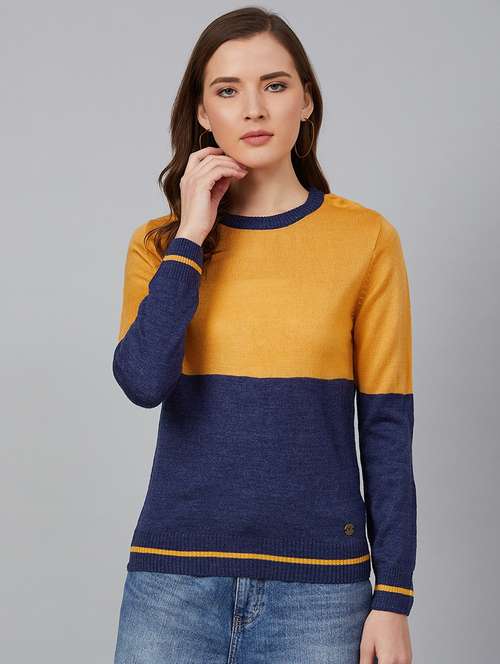 - » round neck color block pullover