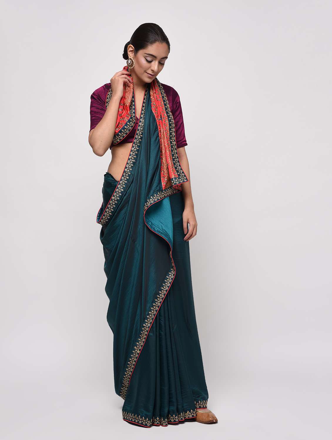 embroidery bordered saree with blouse - 16236753 - Very Small Image - 1
