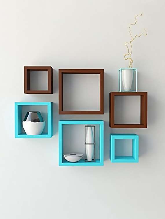 - » square with d��cor your home wooden wall shelf set 6 - blue -brown
