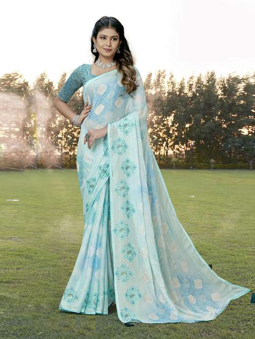 embroidered work bandhani printed saree