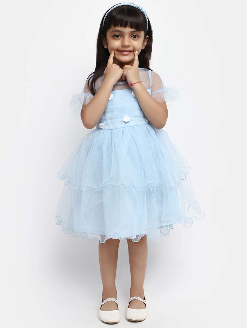 - Dress up your little ones in frocks featuring pretty patterns in net .