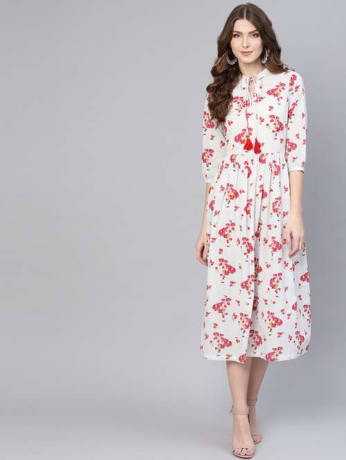 tie up neck floral a-line dress