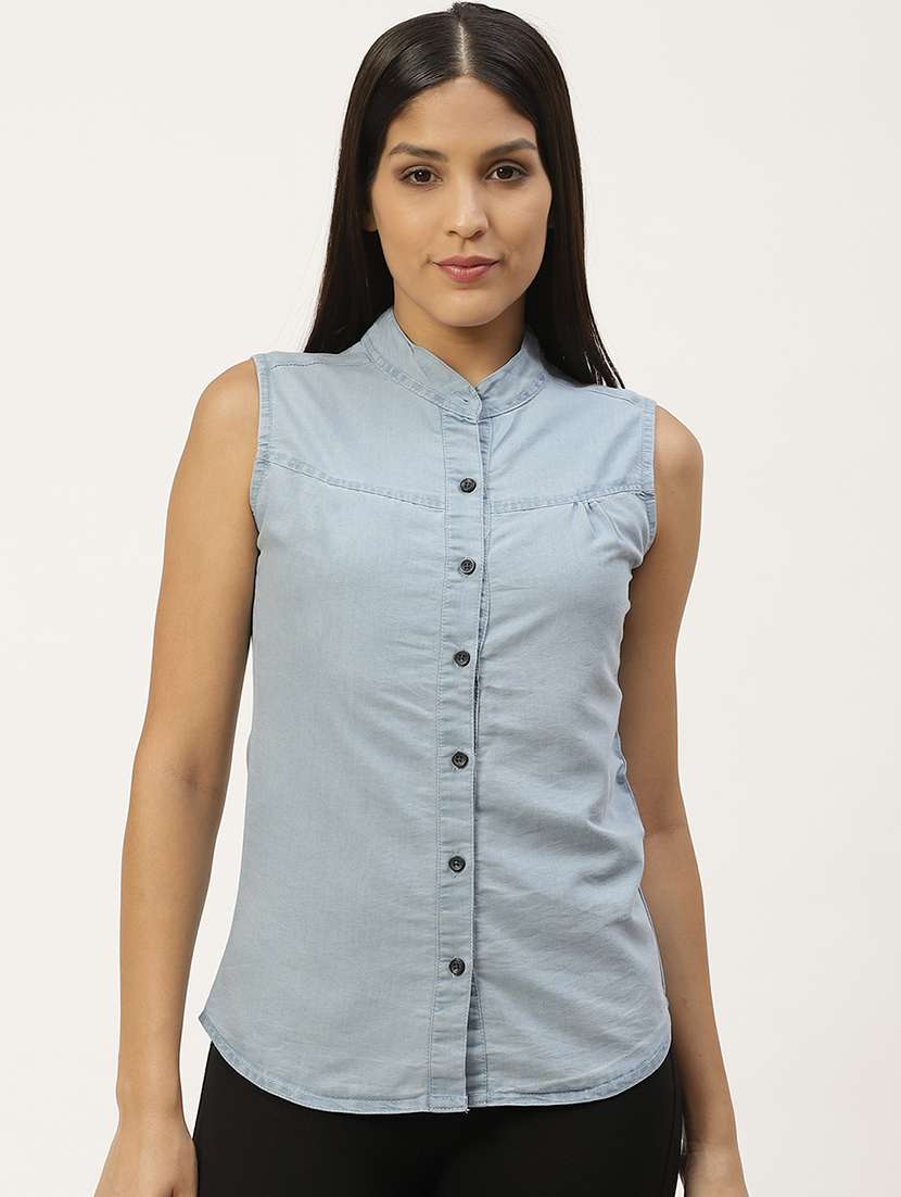 - » mandarin neck sleeveless shirt